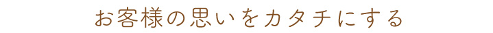 そのスローガンを胸に私達は、お客様の大切な想いをオンリーワンの「カタチ」へと変革させた商品・サービスを、ご提供いたします。